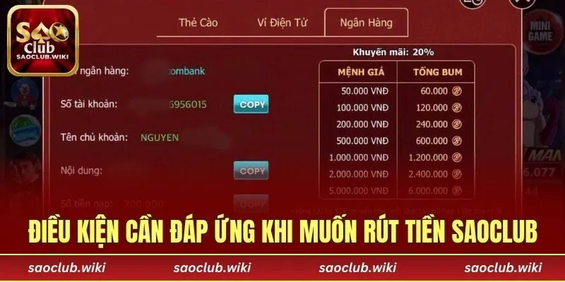 Điều kiện cần đáp ứng khi muốn rút tiền SAOCLUB