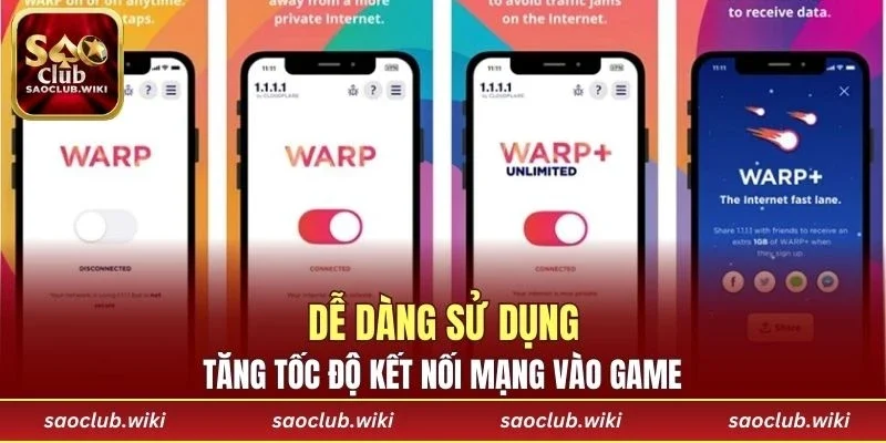 Tình trạng giật lag luôn là ác mộng của người chơi game online. Nhờ công nghệ WARP, phần mềm thiết lập đường truyền riêng ổn định hơn, giúp kết nối không bị gián đoạn giữa chừng. Bạn sẽ ít gặp cảnh game đứng hình hay rớt mạng khi đang cao trào.